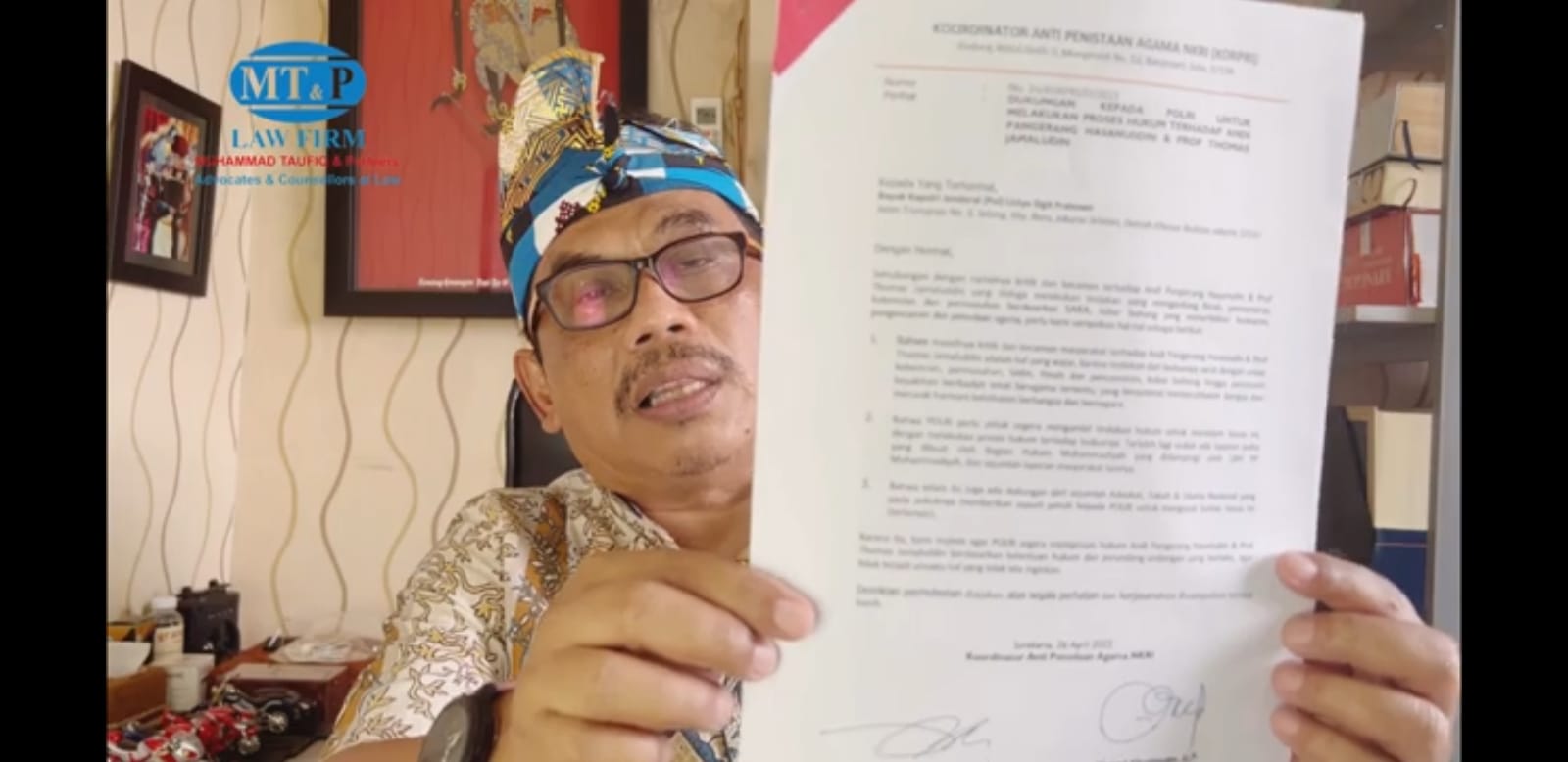 Bahkan Dr. Taufiq beserta 30 orang mulai dari rektor, tokoh agama hingga advokat yang tergabung dalam Koordinator Anti Penistaan Agama NKRI (KORPRI) sudah menyampaikan surat pernyataan yang kurang lebih isinya adalah segera menindak dan menangkap AP Hasanudin dan Thomas Jamaludin.
