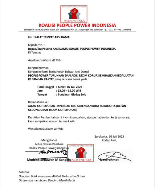 Disetrap.com- Rencana aksi people power akan digelar di Kota Solo, Jumat mendatang dengan tema AKSI DAMAI “PEOPLE POWER, TURUNKAN &…